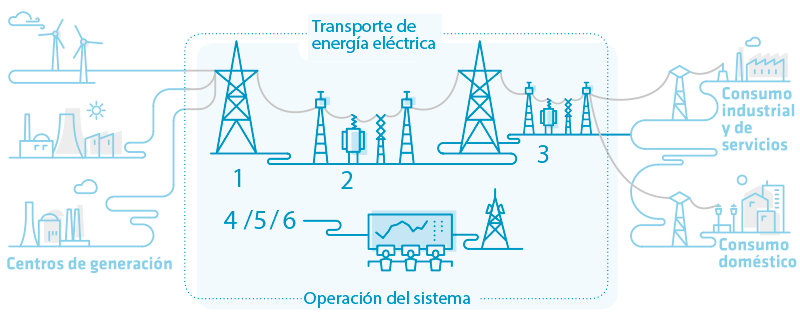 - Transportar la electricidad: Es la dueña y encargada de mantener la red de alta tensión (los cables y torres de gran tamaño) que mueve la energía desde donde se genera hasta las ciudades.